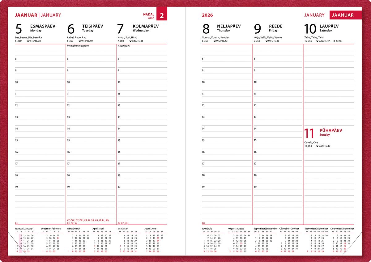 Nädal A5 Vertikaal kunstnahast kaaned (erinevad värvid) 2026