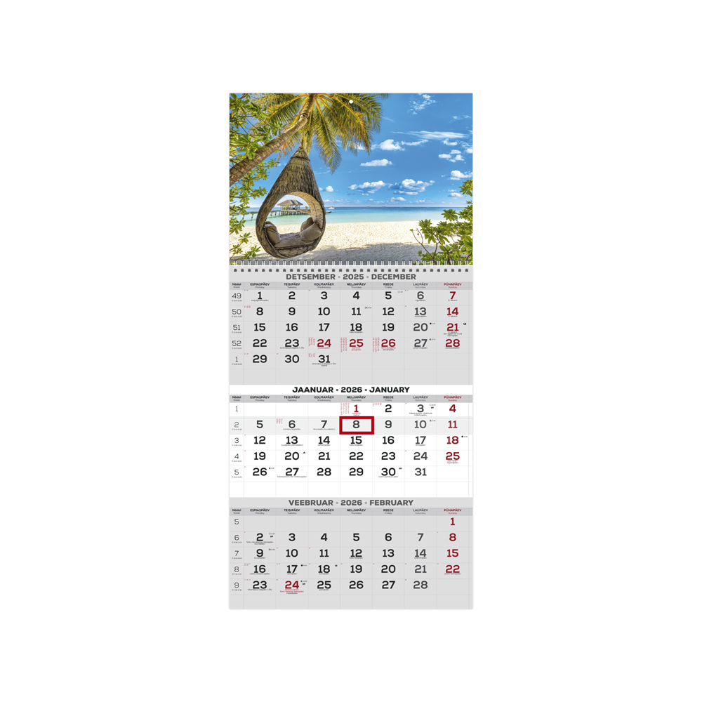 Timer seinakalender 2026 TRIO eesti-inglise (erinevad)